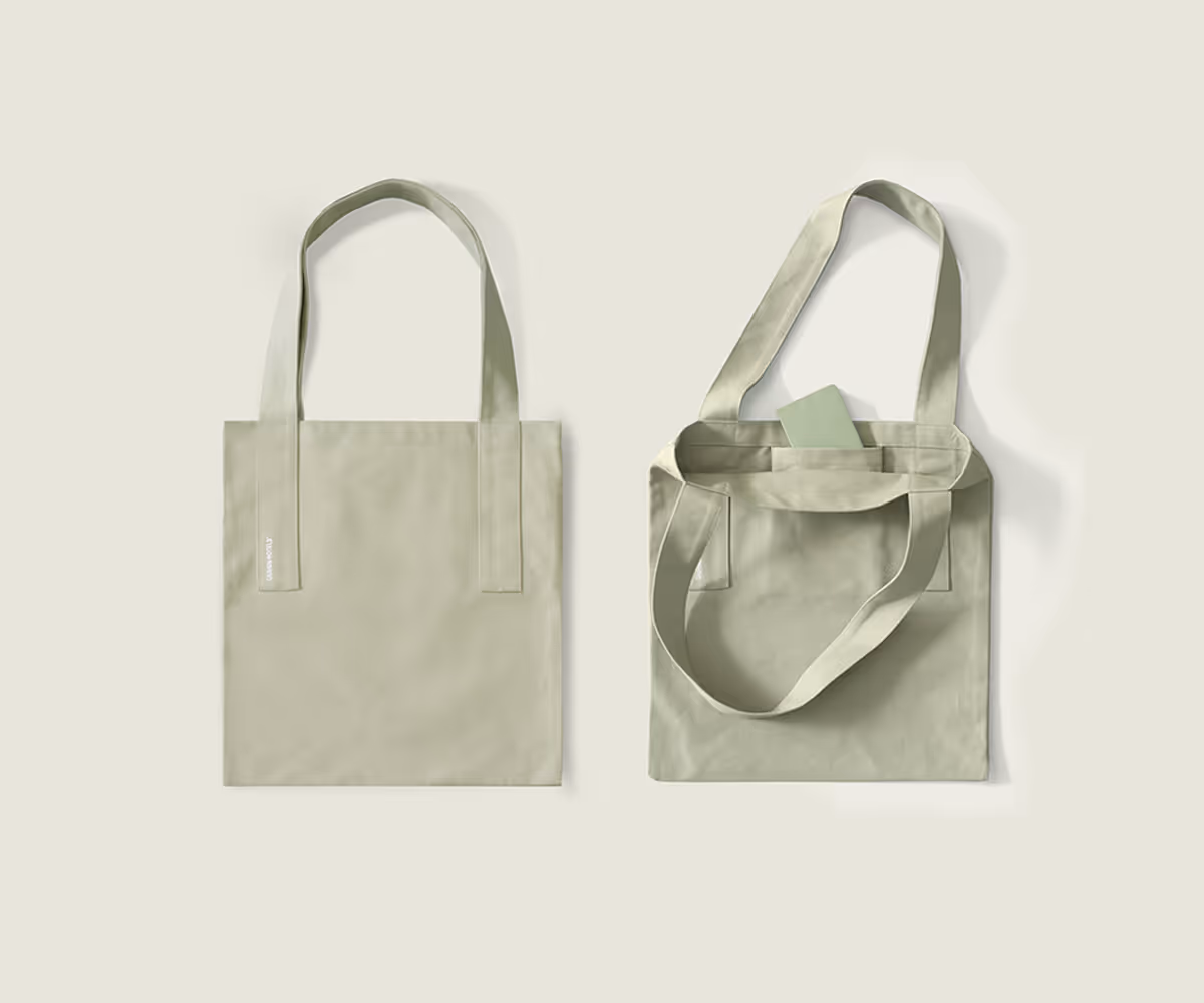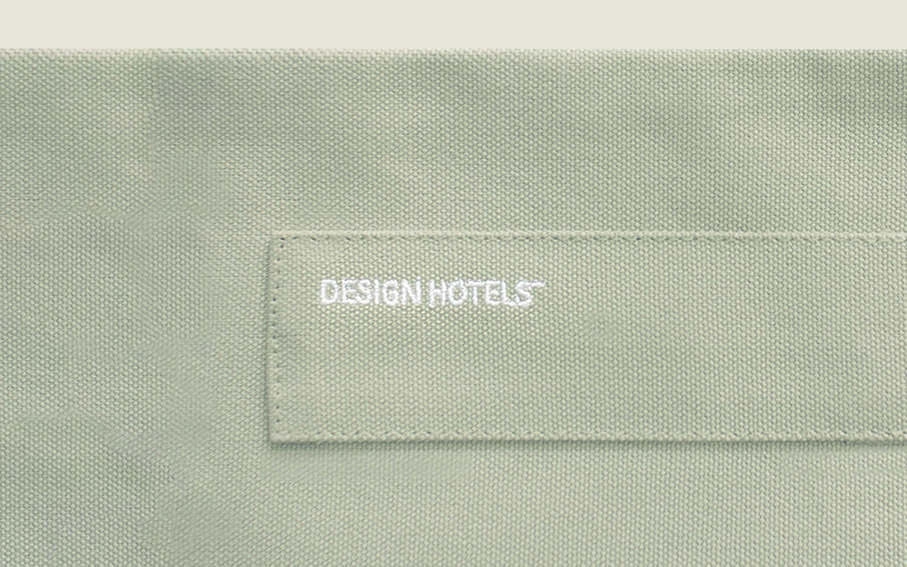 Design of The Design Hotels canvas bag. 100% organic cotton with inside pocket and wide straps—featuring a subtly embroidered Design Hotels logo.